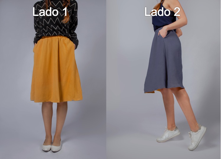 Falda Midi Reversible (doble cara) : lado 1 Azul / lado 2 Amarillo
