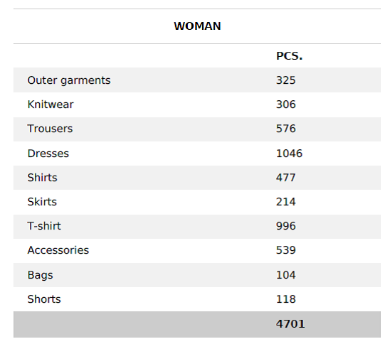 Ropa ZARA, coleccion regular de 2019-20. Lltes de 10.000 piezas, 50% mujer, 30% hombre 20% niño y complementos.
