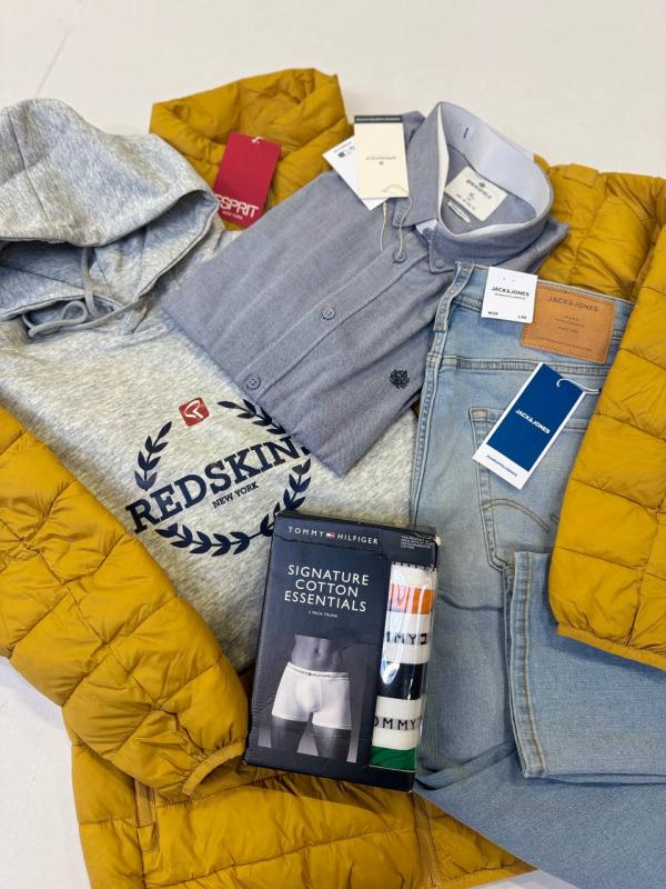 17/12/2025 NUEVO EN STOCK!Las mejores marcas de moda de Amazon para mujer, hombre y niño: Hugo Boss, Adidas, Tommy Hilfiger, Calvin Klein, Pieces, Vila, Pepe Jeans, Love Moschino, Desigual, Levi's, Only, Name it y muchas más.Contenido:– Disponible todo el año– Embalaje original, Categoría A– ¡Lista de embalaje detallada disponible!– Ropa para mujer, hombre y niño.– Chaquetas, abrigos, sudaderas, vaqueros, jerséis, pijamas, vestidos, faldas, pantalones, camisas, blusas, blazers y mucho más...Precio: 4,50 € cada unoPedido mínimo: 5000 unidadesEtiquetas:
