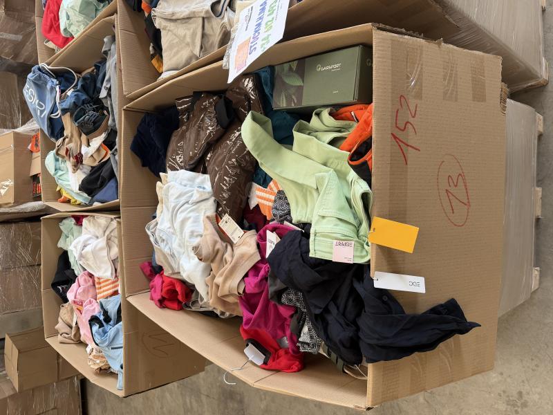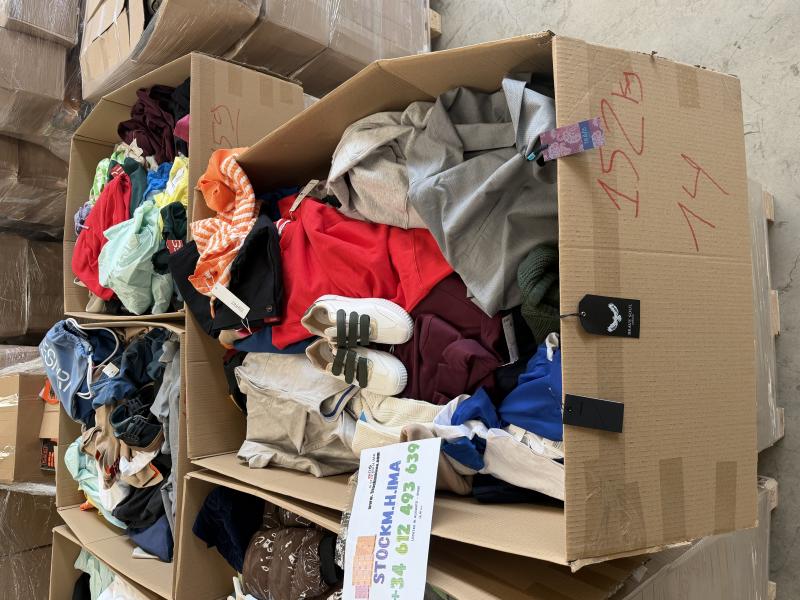 03/03/2026 ROPA Y CALZADO NUEVO DE MARCASLas cajas incluyen: ?????? Ropa, ???? Calzado, Accesorios vestimenta..PRODUCTO VARIADO, LIQUIDACION DE TIENDA. ??NADA DE DEVOLUCIÓN??????CAJAS VARIADAS??Cada caja compone variedad en ropa y calzado para HOMBRE MUJER Y NIÑOS. VARIEDAD INVIERNO / VERANOMarcas: ESPRIT / ISABEL MORA / JENNYFER / WB / EDC etc….Mas de 1’000 MARCAS EUROPEAS??????????????No se dispone de un listado detallado del producto, la composición es variada.??COMPRA MINIMA 1 CAJA TU ELIGUES TU CAJA YA?????????? Detalles del lote• Total: 9 palets mixtos• ?UNIDADES POR KG: 4/U aprox????• ?Precio por KG: 5€ ???? ???• ?CADA CAJA TIENE ENTRE 140kg A 160KG¡Vas a dejar pasar esta oportunidad? ???????? ¡Llamame ahora!??¡Te estamos esperando!????STOCKM.H.IMA S.L???? +34 612 493 639?Galería de fotos del lote: