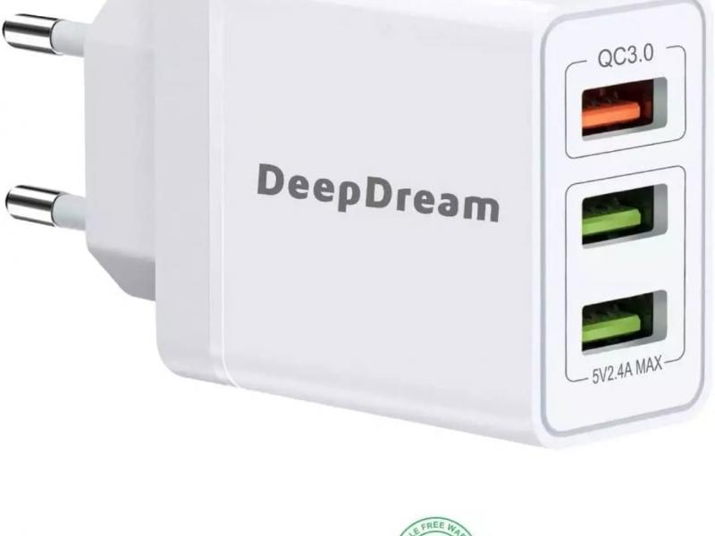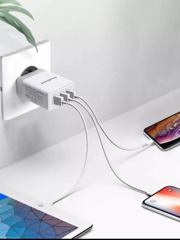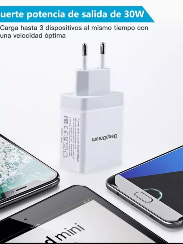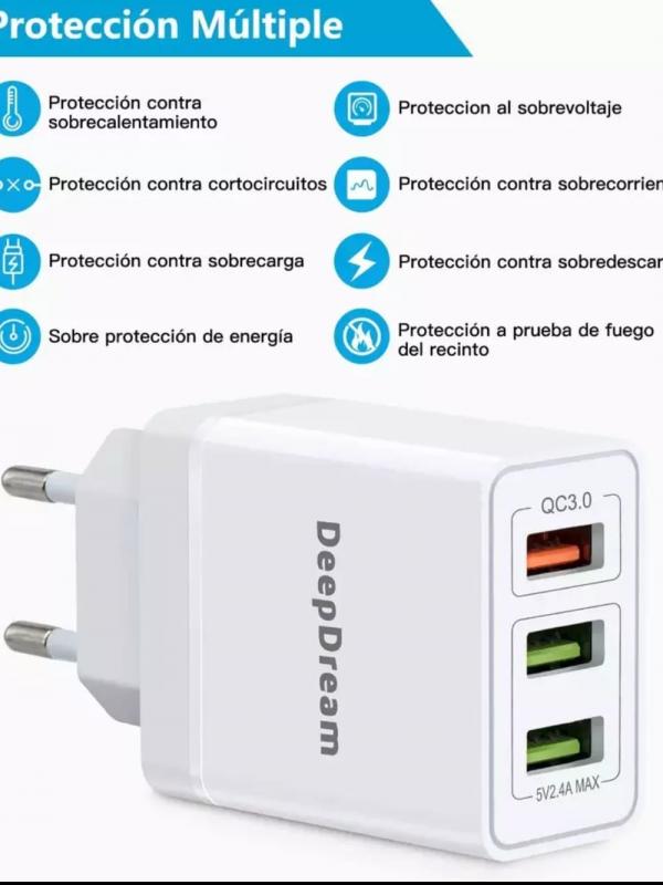 ARTICULO: Cargador con triple USB europeo, marca Deepdream modelo D330WDE. Producto nuevo.