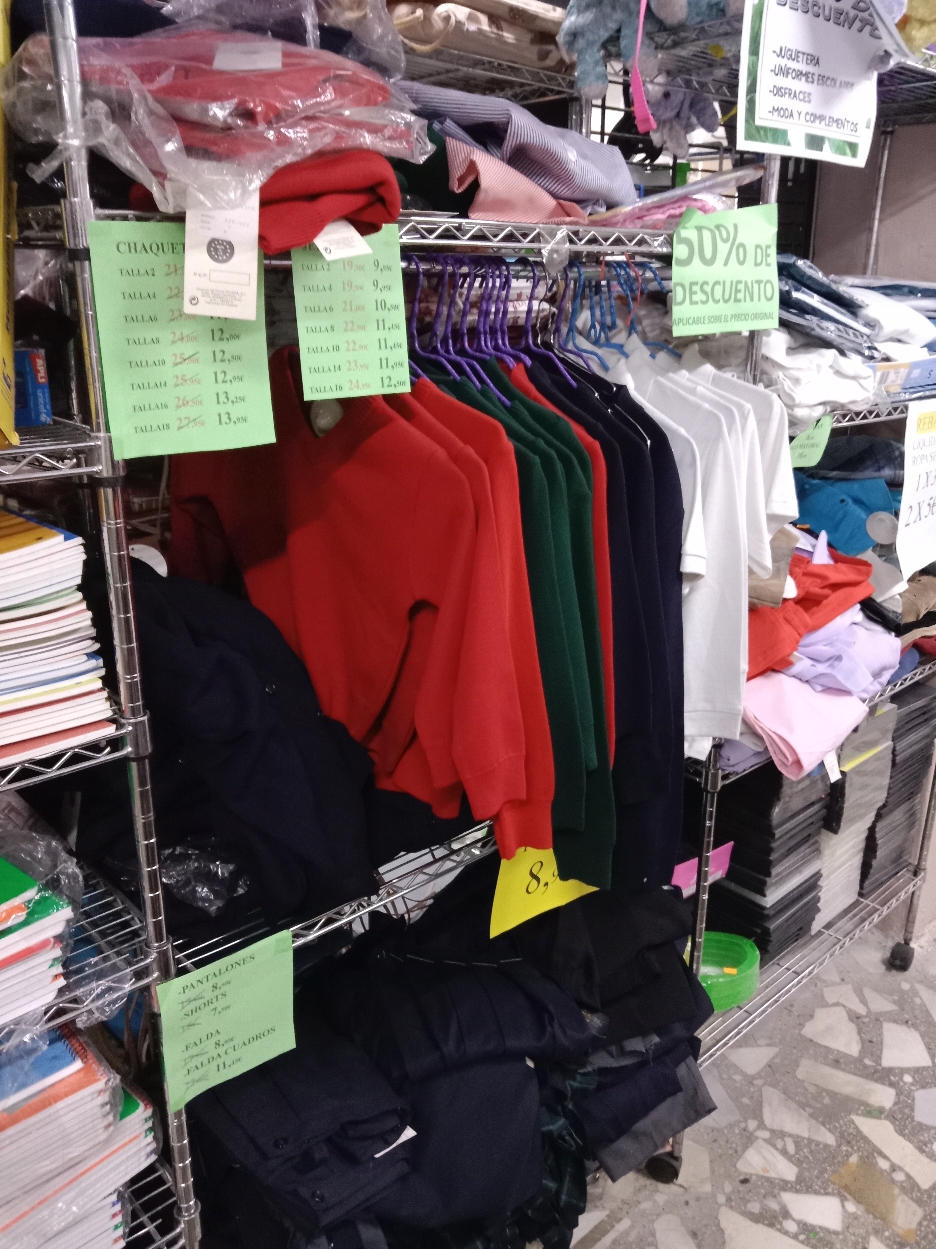 Uniformes escolares 70 jerséis marca pecesa y chaquetas también de la misma marca. Polos 40 , de asmán y mayoral en blanco manga larga y corta. 41 Pantalónes escolares y faldas. En azul marino . Gris. Y verde a cuadros .con y sin tiras. Las típicas de uniformes escolares . Tallas surtidas. lote entero 1.300€