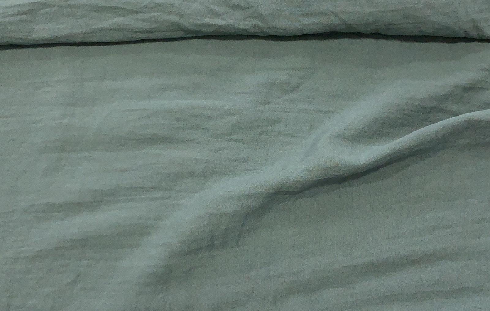 Tejido fresco para prendas de verano, ideal para pantalones cortos o largos, tops, americanas, etc. De color verde entero. Son 72M de Tela. 86% RY 14% PA.