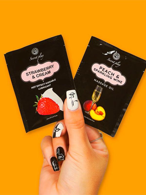 Monodosis aceite para masajes: 0, 50 /ud (400uds = 200€) (IVA NO INCLUIDO) Se vende caja con 400 sobres monodosis con aceite para masajes, 200 de cada sabor (melocotón y fresa).