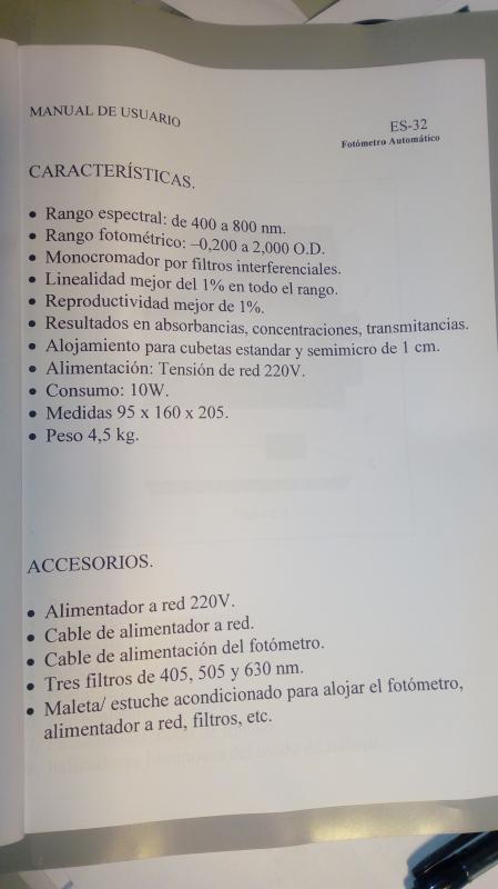 09/10/2025 RANGO FOTOMETRICO DE 0,200 A 2,00 O.D.MONOCROMADOR POR FILTROS INTERFERENCIALES.LINEALIDAD MEJOR DEL 1% EN TODO EL RANGO.REPRODUCTIVIDAD MEJOR DEL 1%.RESULTADOS EN ABSORBANCIAS, CONCENTRACIONES Y TRANSMITANCIAS.LOTE DE 14 UNIDADES A 3€ TOTAL LOTE 42€ + IVA + PORTES.Etiquetas:
