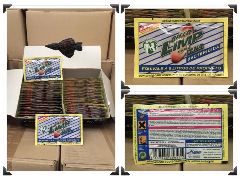 Se vende lote completo de productos de limpieza con 2.500.000 litros, por 30.000€, sin transporte. Lote formado por 13 pallets de bactericida de uso general en sobre, también válido para la industria alimentaria, 4 pallets de limpiador higienizante 2 componentes efecto lejía + detergente en sobre doble, 8 pallets de limpiador higienizante 1 componente efecto lejía PH neutro en sobre, 7 pallets de detergente con pulverizador + 2 toallas microfibra para la limpieza de vehículos en general, sin utilización de agua, y 7 pallets de dispensador de papel secamanos en ABS. NOTA: el concentrado de todos los productos con sobre se diluye en agua obteniendo 5 litros de limpiador.
