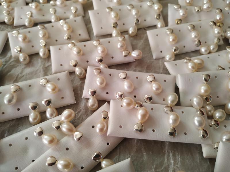 Pendientes de plata y perla con forma de corazón y perla en gota, totalmente nuevos.
