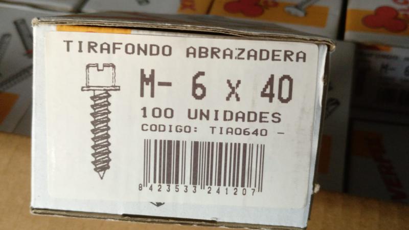 Tengo 400 cajas de tornillos tirafondos para abrazaderas. M6 en el lado abrazadera y 40mm de largo en el lado tirafondos.