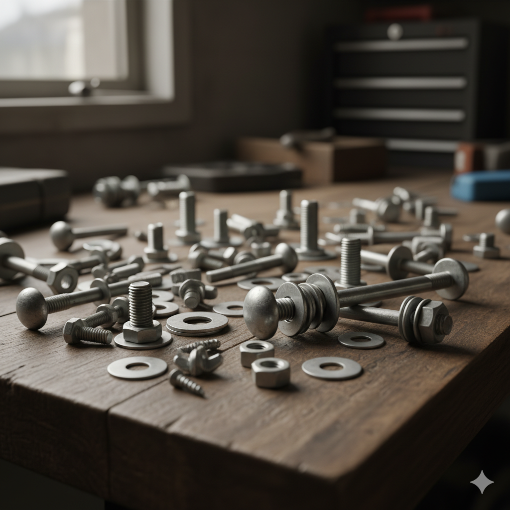 Tornillos, tuercas, arandelas y abarcones según relación adjunta.