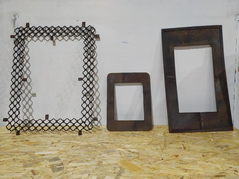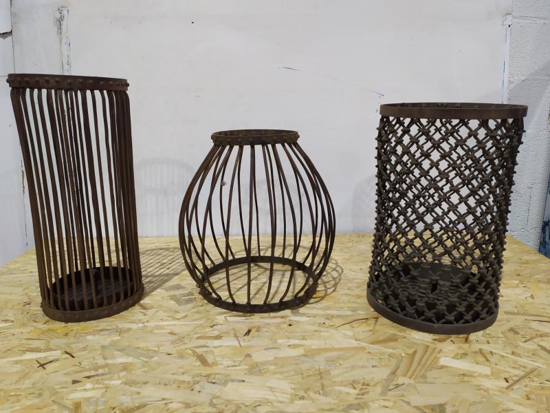 grandes lotes de forja artesanal que proviene de la India. Para decoracion, tipo sillas, salvachispas, lamparas, espejos, etc...