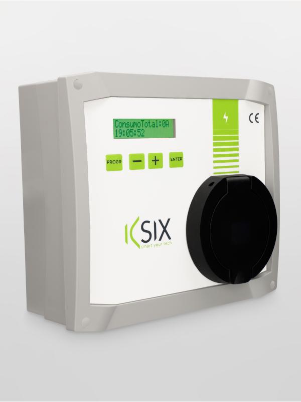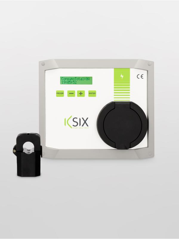 El cargador Policharger KSIX permite ajustar la potencia de carga hasta 7,4 kW en cada momento a la potencia disponible de la vivienda sin rebasar la potencia máxima contratada. Se pueden interconectar hasta 50 cargadores en un edificio sin rebasarla. Además, la potencia entre todos los cargadores y la demanda de los diferentes VE se pueden ajustar de forma optimizada. Incluye medidor de potencia (pinza toroidal).